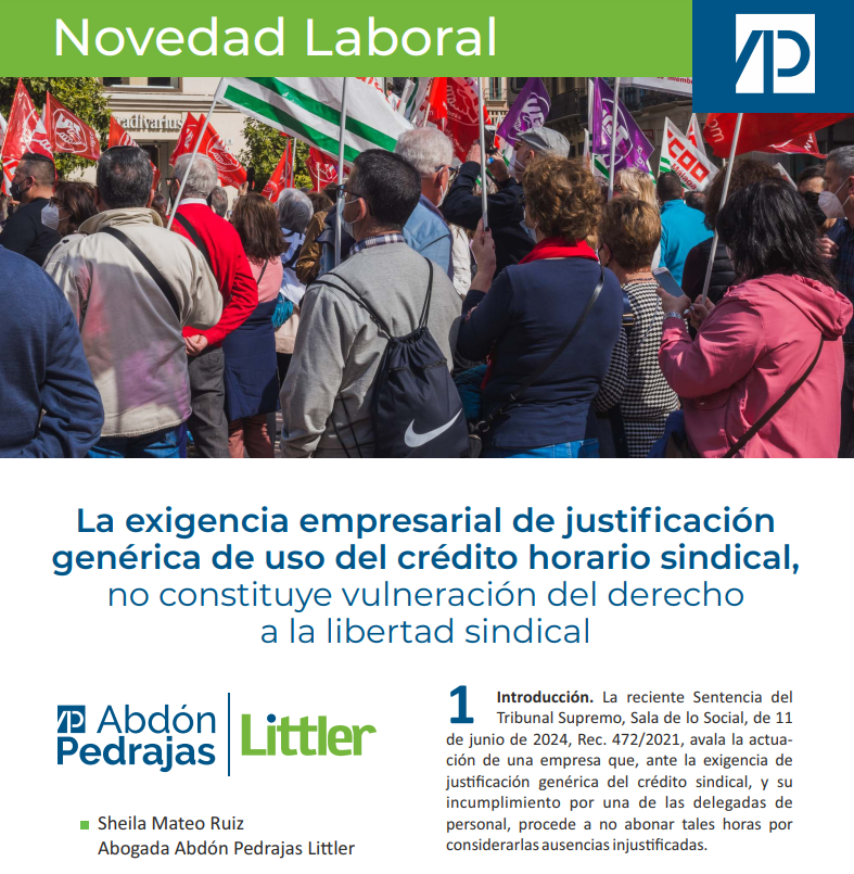 Novedad Laboral.- La exigencia empresarial de justificación genérica de uso del crédito horario sindical, no constituye vulneración del derecho a la libertad sindical.