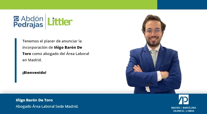 Íñigo Barón de Toro es abogado en ABDÓN PEDRAJAS | LITTLER, donde se incorporó en 2024 para integrarse en el área laboral de la oficina de Madrid. Participa en el asesoramiento en materia de relaciones laborales, apoyando en la elaboración de documentación jurídica y en el análisis de cuestiones laborales.